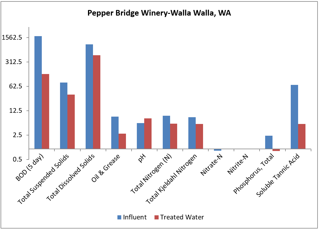 In another test conducted in 2010 on a winery waste water pond located in Walla Walla, Washington, the results were similar in overall effectiveness. The BOD rate at the location of the influent was approximately 1,700 mg/Liter. The sample taken from the pond that was being circulated with a similar circulation system to the HONU® (Circul8) showed a substantial decline in BOD, as well as other important elements. The BOD rate dropped to 141 mg/Liter or 8.3% of the BOD of the water entering the pond.